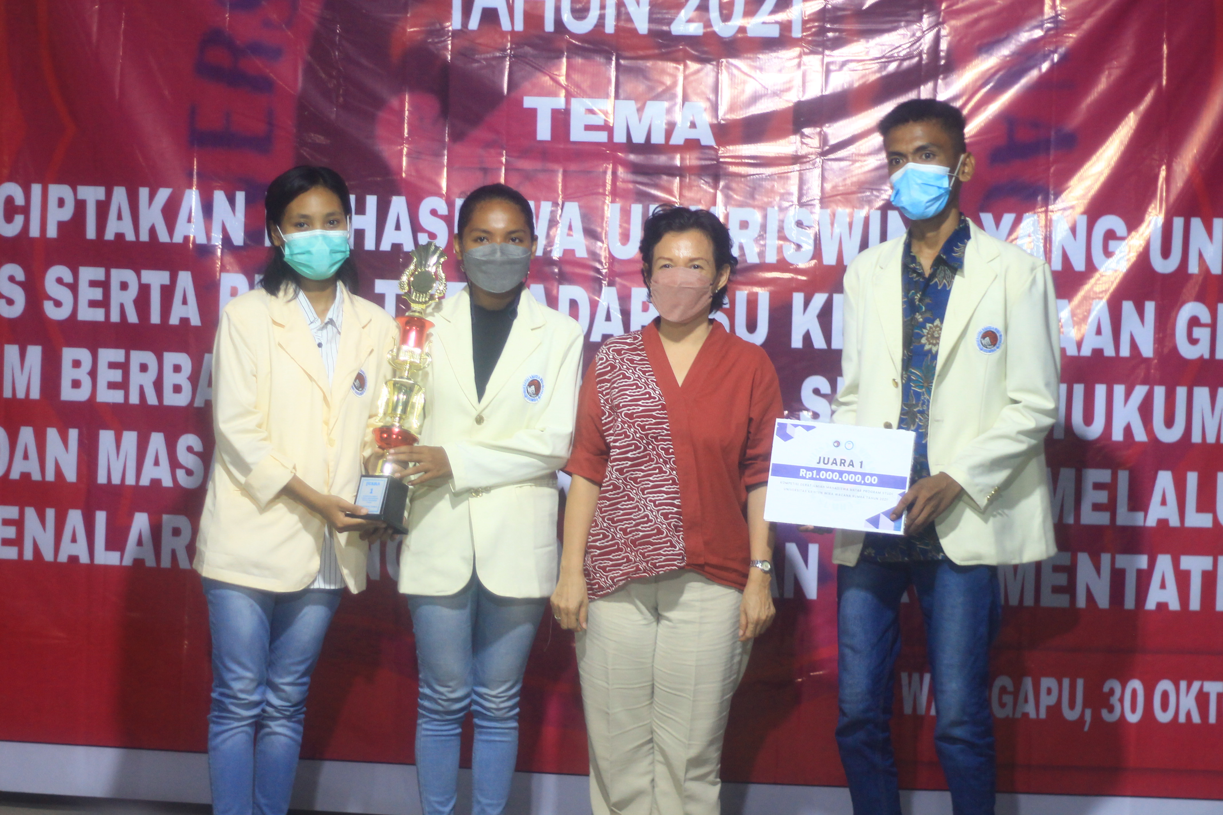 Atas dasar eksposisi singkat diatas pada momentum ini bertepatan dengan Dies Natalis UNKRISWINA Program Studi Hukum Universitas Kristen Wira Wacana Sumba menyelenggarakan kompetisi debat Ilmiah Mahasiswa antara program studi di lingkungan Universitas Kristen Wira Wacana Sumba dengan tema “Menciptakan Mahasiswa Unkriswina Yang Unggul, Kritis Serta Peka Terhadap Isu Kesetaraan Gender, Hukum Berbasis Konteks Lokal Sumba (Hukum Adat) Dan Masalah Kontekstual Lainnya Melalui Penalaran Yang Radikal dan Argumentatif”