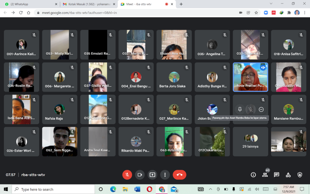 Melibatkan praktisi secara langsung dalam pembelajaran akan memberikan pengetahuan yang lebih mendalam kepada mahasiswa. Hal inilah yang dilakukan oleh Prodi Pendidikan Biologi Universitas Kristen Wira Wacana Sumba dalam mata kuliah Media Pembelajaran Biologi dan Pengembangan Kreativitas Pembelajaran. Kegiatan yang dilaksanakan secara daring pada Kamis, 9 Desember 2021 pkl 07.30-10.00 WITA ini mengundang dosen dari FMIPA UNESA, Dr. Rini Pratiwi Puspitawati M.Si sebagai praktisi pembelajaran kreatif. Ibu Dr. Rini telah menjadi dosen di FMIPA UNESA sejak tahun 2007 dan memiliki bidang ilmu penelitian terkait pengembangan media pembelajaran.