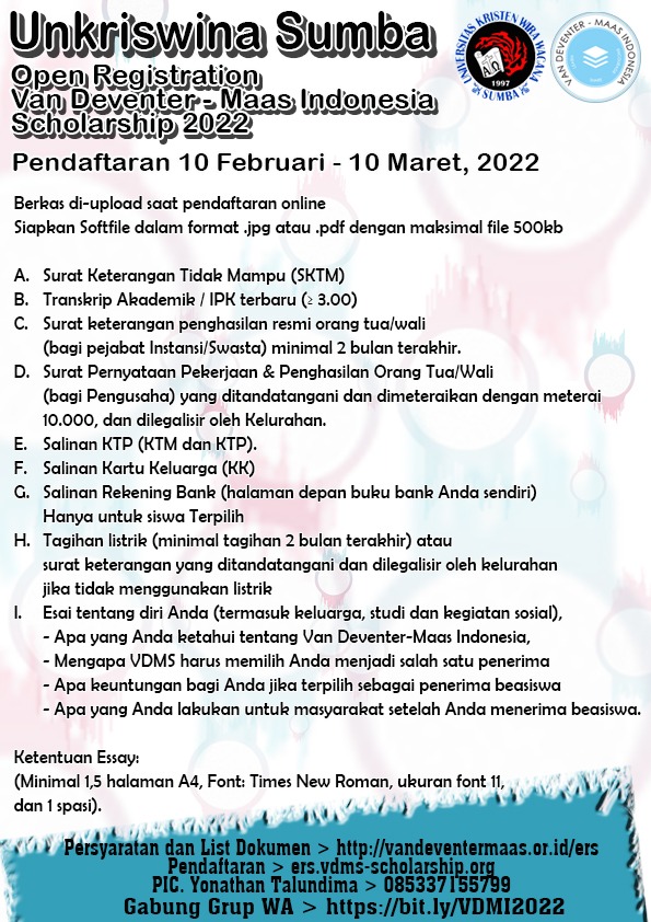 Open Registration Van Deventer-Maas Indonesia Scholarship Tahun 2022