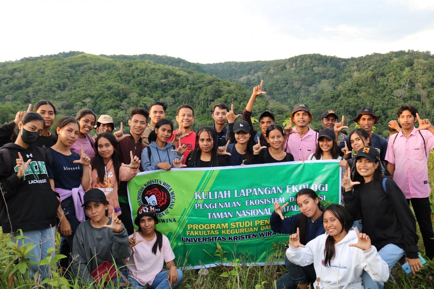Mahasiswa Prodi Pendidikan Biologi berkesempatan mengunjungi kawasan Taman Nasional Matalawa dalam rangka kuliah lapangan mata kuliah Ekologi yang diampuh Ibu Anita Tamu Ina, M.Si. Kuliah lapangan ini dilaksanakan pada Sabtu, 12 November 2022 yang berlokasi di Hutan Langgaliru dan Hutan Tanadaru. Tujuan dari kuliah lapangan ini adalah untuk mengenalkan jenis-jenis ekosistem yang ada di kawasan TN Matalawa, keanekaragaman hayati yang ada didalamnya, dan melihat langsung habitat burung endemik Kakatua Jambul Jingga dan Julang Sumba di alam. Kegiatan diawali dengan pemaparan materi oleh Tim Matalawa di Kantor Resort Kambata Wundut, Lewa, dan dilanjutkan dengan cara pengambilan sampel vegetasi tanaman di Ekosistem Hutan Sekunder di Langgaliru, dan pengamatan burung di Ekosistem Sabana di Tanadaru. Di titik lokasi pertama di Hutan Langgaliru, mahasiswa diajari cara pengambilan vegetasi tumbuhan dengan metode jalur dan transek garis. Dalam pengamatan yang dilakukan, terdapat 1 ekor burung Julang Sumba dan 9 ekor burung Kakatua Jambul Jingga yang terlihat beterbangan di lokasi tersebut. Walaupun cuaca tidak mendukung, karena hujan sangat deras di lokasi, namun kuliah lapangan ini memberikan pengalaman langsung kepada mahasiswa mengenai pengenalan ekosistem yang ada di Pulau Sumba secara khusus di lokasi Taman Nasional Matalawa. Mahasiswa juga bisa melihat secara langsung habitat dua burung endemik Sumba yaitu Kakatua Jambul Jingga (Cacatua sulphurea citrinocristata) dan Julang Sumba (Rhyticeros everetti) di alam. Kegiatan ini diikuti oleh 50 mahasiswa peserta Mata Kuliah Ekologi (Kelas A dan B), dosen pengampu, dan 10 staf dari Balai TN Matalawa.