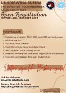 Open Registration Van Deventer-Maas Indonesia Scholarship Tahun 2023