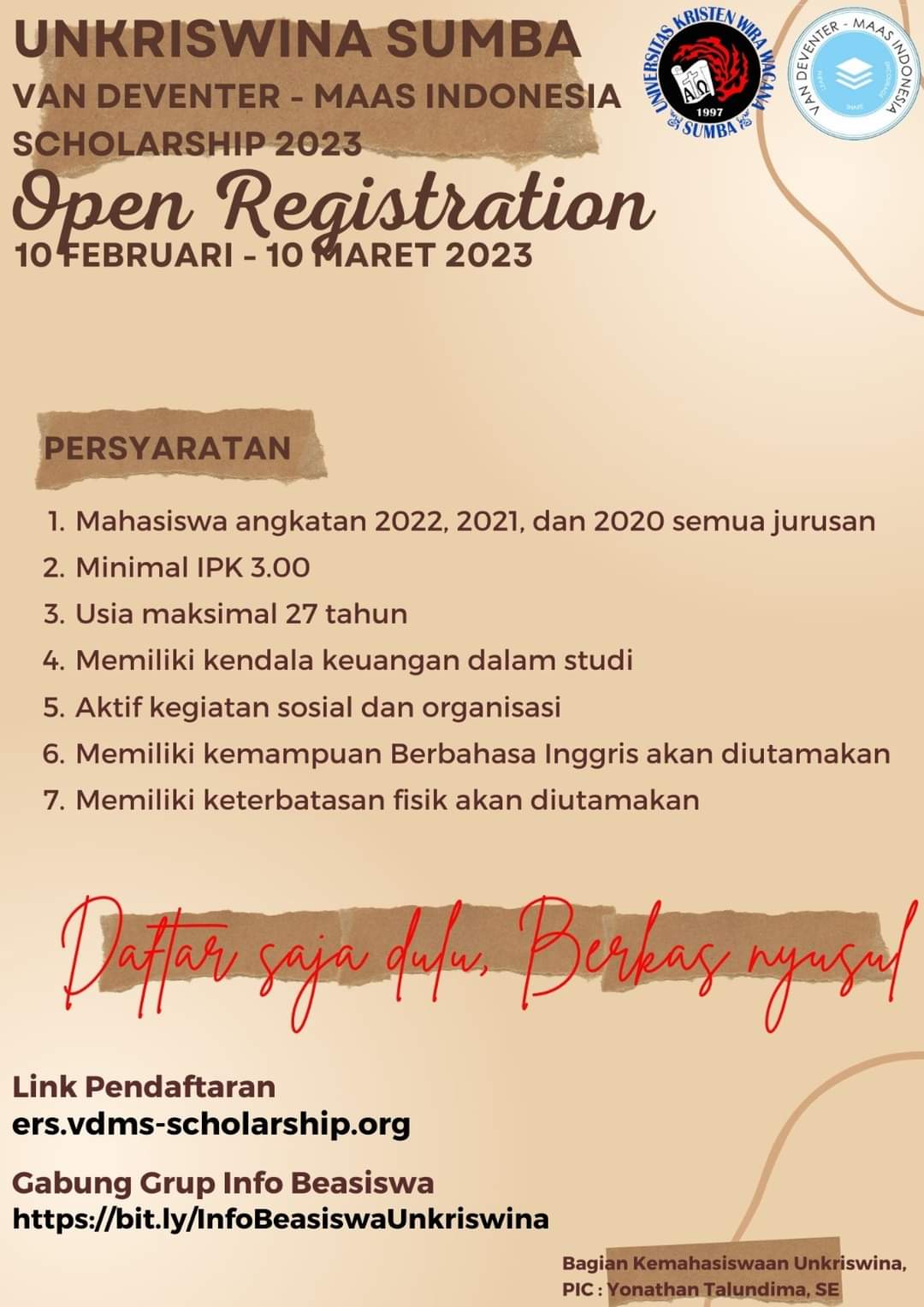 Siapkan berkas – berkas dan silahkan daftarkan diri kalian 🙂