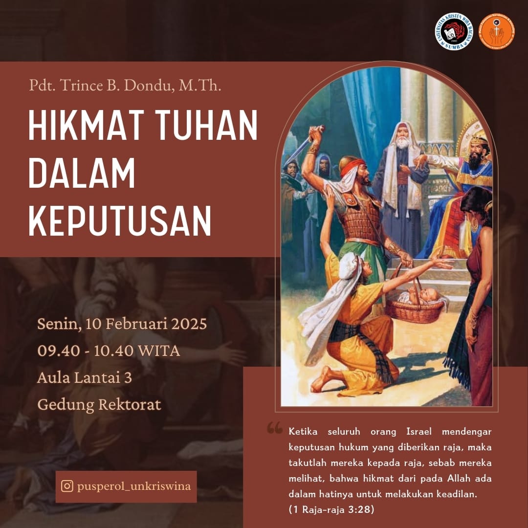 P : Ya Tuhan Maha Bijaksana, kami datang ke hadapan-Mu dengan hati yang remuk, menyadari betapa sering kami mengambil keputusan tanpa mencari hikmat-Mu terlebih dahulu. Seperti para perempuan dalam kisah penghakiman Salomo, kami kerap kali dikuasai oleh kepentingan diri sendiri, mengabaikan kebenaran dan keadilan yang Engkau kehendaki. Ampuni kami, ya Tuhan, ketika kami lebih mengandalkan kebijaksanaan duniawi daripada mencari hikmat-Mu. Kami sering tergesa-gesa dalam mengambil keputusan, tidak peka terhadap pimpinan Roh Kudus, dan abai terhadap kepentingan orang lain. Seperti perempuan yang rela bayi itu dibunuh, kadang kami lebih memilih merusak daripada mengalah demi kebaikan bersama. Kami mengaku, ya Tuhan, bahwa kami sering mengambil keputusan berdasarkan emosi dan ego semata, bukan berdasarkan kasih dan kebenaran seperti yang Engkau ajarkan. Layaknya Salomo yang memohon hikmat untuk memimpin umat-Mu, berilah kami hati yang rendah untuk selalu bergantung pada tuntunan-Mu. Sucikanlah hati kami dari segala kepentingan diri yang menghalangi kami melihat kehendak-Mu dengan jernih. Mampukan kami untuk mengambil keputusan yang mencerminkan kasih-Mu, seperti ibu sejati dalam kisah tersebut yang rela melepaskan anaknya demi kehidupan sang anak.