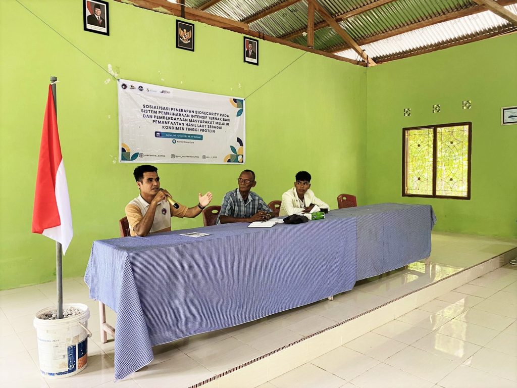 Sesi sosialisasi ini tidak hanya bersifat satu arah, melainkan berjalan sangat interaktif dengan diskusi dan sesi tanya jawab yang mendalam. Antusiasme terlihat jelas, terutama dari kelompok perempuan desa yang menunjukkan minat tinggi dalam meracik kondimen laut. Mereka menyadari betul bagaimana inovasi ini dapat meningkatkan nilai jual produk lokal dan membuka peluang ekonomi baru. Tak ketinggalan, kelompok remaja desa juga menunjukkan komitmennya untuk membantu penerapan biosekuriti di peternakan keluarga, sebuah langkah awal yang menjanjikan untuk generasi penerus.