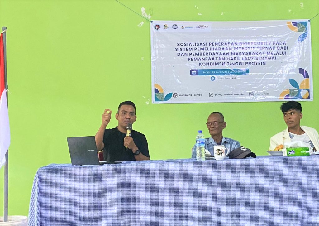 Sumba Timur, 6 Juni 2025 – Desa Kuta, Kabupaten Sumba Timur, baru-baru ini menjadi tuan rumah kegiatan sosialisasi komprehensif yang diinisiasi oleh akademisi Universitas Kristen Wira Wacana (Unkriswina) Sumba. Acara ini berfokus pada penerapan biosekuriti pada sistem pemeliharaan intensif ternak babi dan pemberdayaan masyarakat melalui pemanfaatan hasil laut sebagai kondimen tinggi protein, bertujuan untuk meningkatkan ketahanan pangan dan kesejahteraan warga desa.
