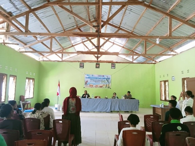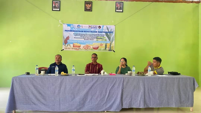 Waingapu, 04 Juli 2024- Tim PKM-PM Dosen dan Mahasiswa Unkriswina bersama melakukan pengabdian kepada masyarakat Desa Kuta, khususnya kelompok Dasawima Kuta. Tim terdiri dari 3 orang dosen yaitu Bapak Uska Peku Jawang, S.Si., MP., Bapak Elfis Umbu Katongu Retang, S.TP., M.Agb; Ibu Melycorianda H. Ndapamuri, S.P., M.P dan 4 orang mahasiswa yaitu Mikel Nikolas Djo; Regina Hara Adji; Friscila Anggreni Kasa; Anggareni Bora. Kegiatan kali ini merupakan tahapan ke 3 dari tahapan kegiatan pelaksnaan kegiatan PkM-PKM Kemenristekdikti 2025. Pada kegiatan kali ini kami melakukan perkenalan program, tim PkM-PKM Unkriswina dan sosialisasi terkait dengan 1) integrasi potensi pertanian dan wisata lokal; 2) diversifikasi hasil pertanian serta inovasi terhadap kuliner khas lokal; dan 3) manajemen dan strategi pemasaran berbasis digital. Peserta dalam kegiatan ini yaitu seluruh anggota kelompok Dasawisma Kuta, ibu PKK, anggota Pokdarwis, dan Pemerintah berjumlah 20 orang. Produk camilan hasil diverisifikasi dari program kemitraan ini yaitu biskuit dengan bahan utama kacang tanah dan sorgum, kacang sembunyi, keripik pisang dengan varian rasa berbeda, inovasi terhadap produk lokal yaitu manggulu dan kaparrak dan tampilan menarik dari kemasannya.