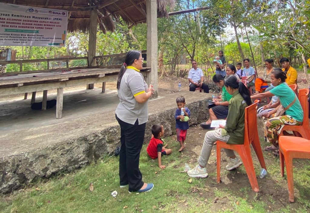 Dalam sambutannya, ketua tim PKM Unkriswina Sumba, Elsa Christin Saragih, S.P., M.P (dosen Prodi Agribisnis) menyampaikan bahwa kegiatan ini bertujuan mendorong masyarakat desa agar mampu melihat potensi usahatani lokal sebagai peluang usaha yang menjanjikan. “Pisang merupakan salah satu komoditas unggulan Desa Kuta. Selama ini hanya dijual dalam bentuk segar, padahal dengan sentuhan inovasi, pisang bisa diolah menjadi berbagai produk bernilai tambah seperti keripik, sale, dan tepung pisang,” ujar Elsa.