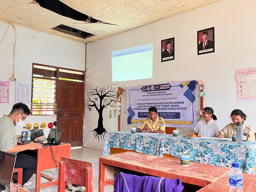Maumaru, Juni 2025 – Universitas Kristen Wira Wacana (Unkriswina) Sumba terus berkomitmen mendukung peningkatan kualitas pendidikan dasar di Sumba. Melalui program Pengabdian Masyarakat Pemula (PMP) yang didanai oleh Direktorat Penelitian dan Pengabdian kepada Masyarakat Kemdiktisaintek, tim dosen lintas disiplin bersama mahasiswa melaksanakan kegiatan Pelatihan dan Pendampingan Guru SD Negeri Maumaru dalam Penggunaan Aplikasi EDUMINE untuk Deteksi Dini Performa Siswa.