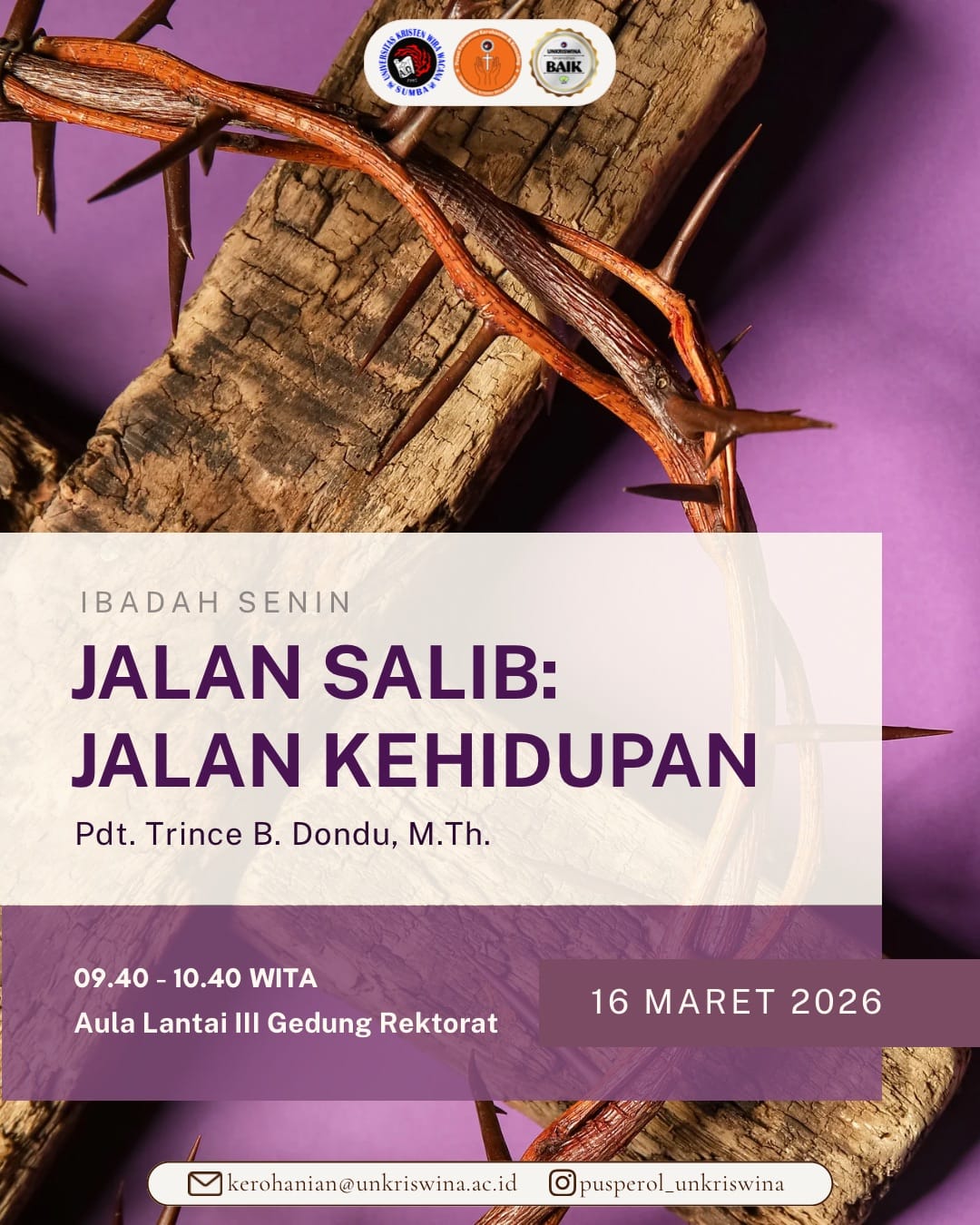 Terima kasih untuk kesediaan hati segenap Rekan Kerja Allah yang telah mengambil pelayanan bersama Tuhan dalam Ibadah Senin hari ini. Kasih dan penyertaan Tuhan melingkupi kehidupan Saudara-Saudari selalu. Bagi Saudara/Saudari yang memiliki kerinduan untuk mengambil bagian pelayanan dalam Ibadah Senin, silakan menghubungi Pusat Pelayanan Kerohanian dan Konseling (PUSPEROL) melalui Rambu Lika pada nomor WhatsApp 081-238-407-288.